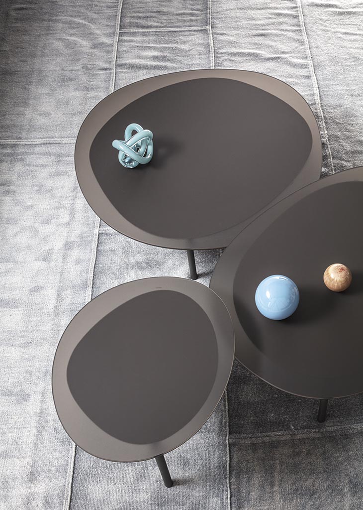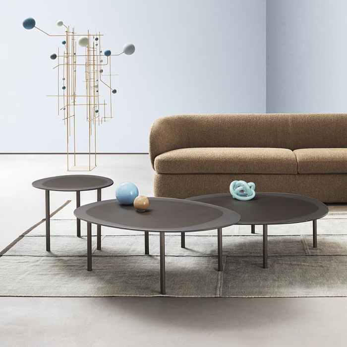TSUKI - это линейка журнальных столиков с металлическим каркасом и столешницей из закаленного стекла и круглой сатинированной кромкой.