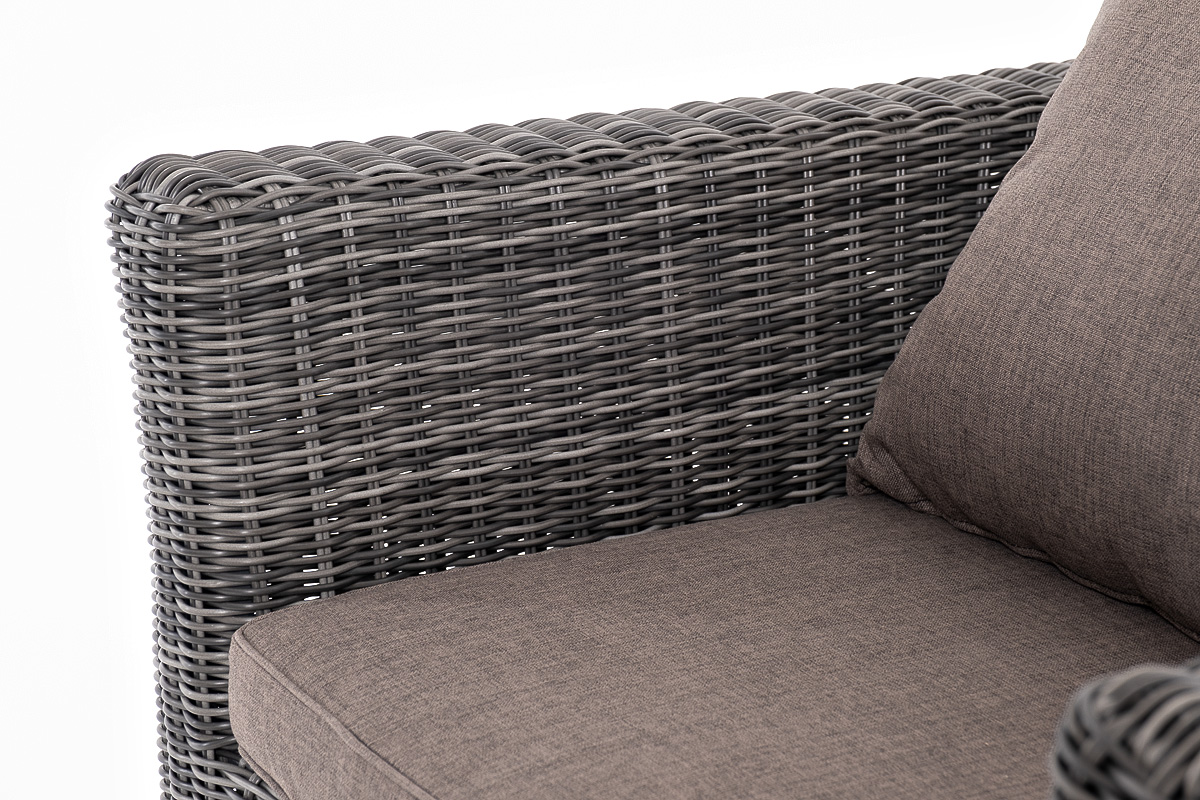 Из алюминия сделан устойчивый каркас мебели. Ее поверхность дополнена искусственным ротангом, из которого сделано ручное плетение, цвет "графит".