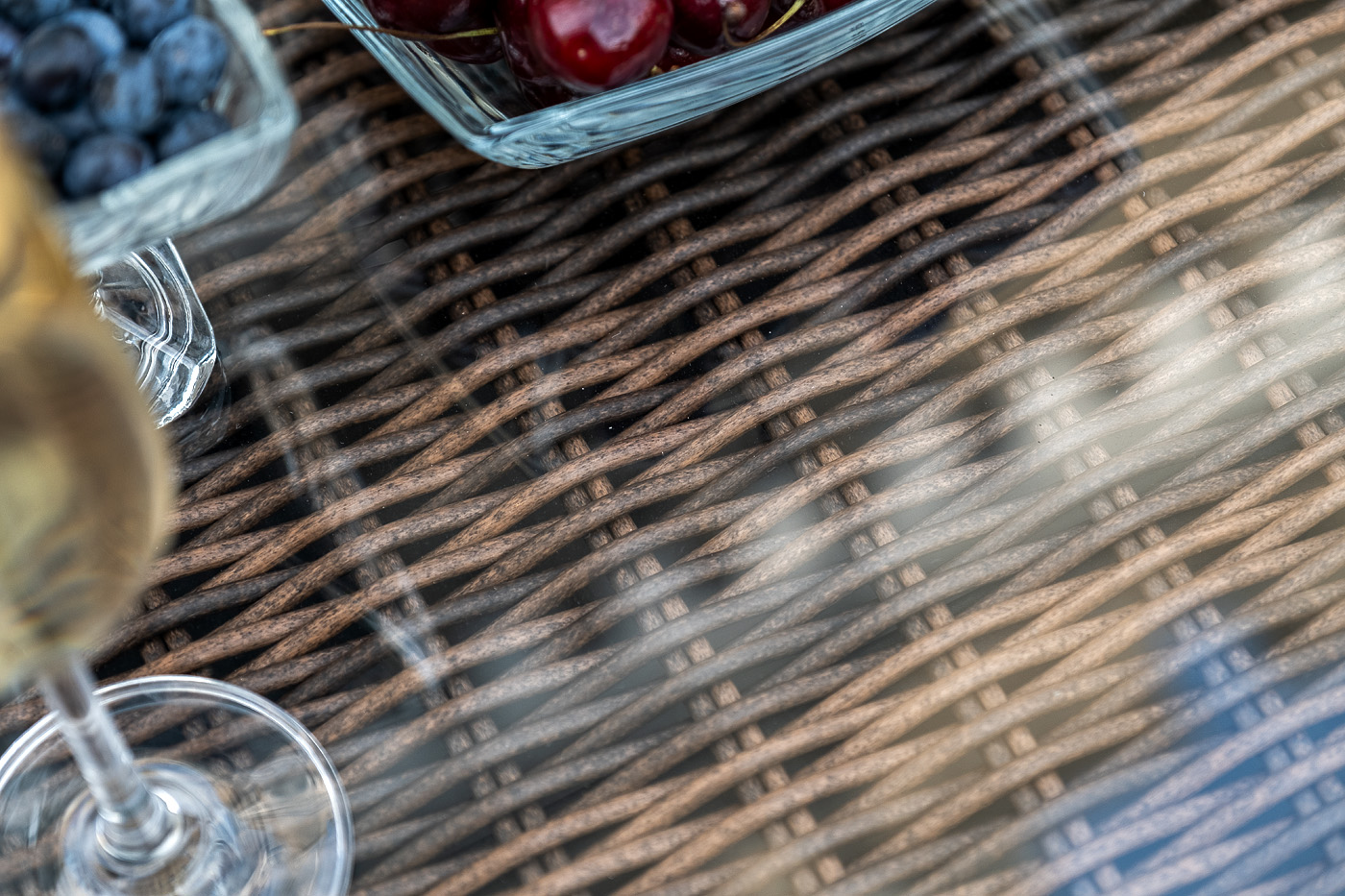 Поверхность плетеного столика представляет столешница из закаленного стекла – 5 мм.