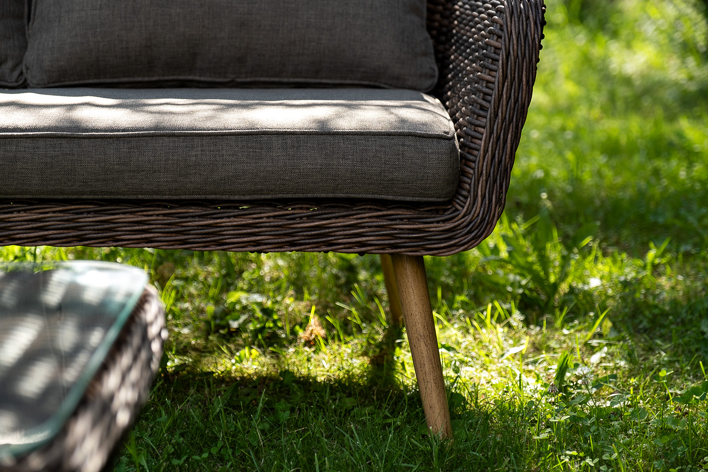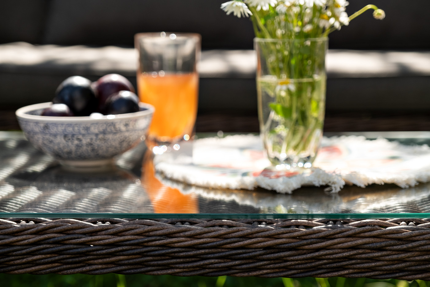 Плетеный столик укомплектован столешницей из закаленного стекла, толщиной – 5 мм.