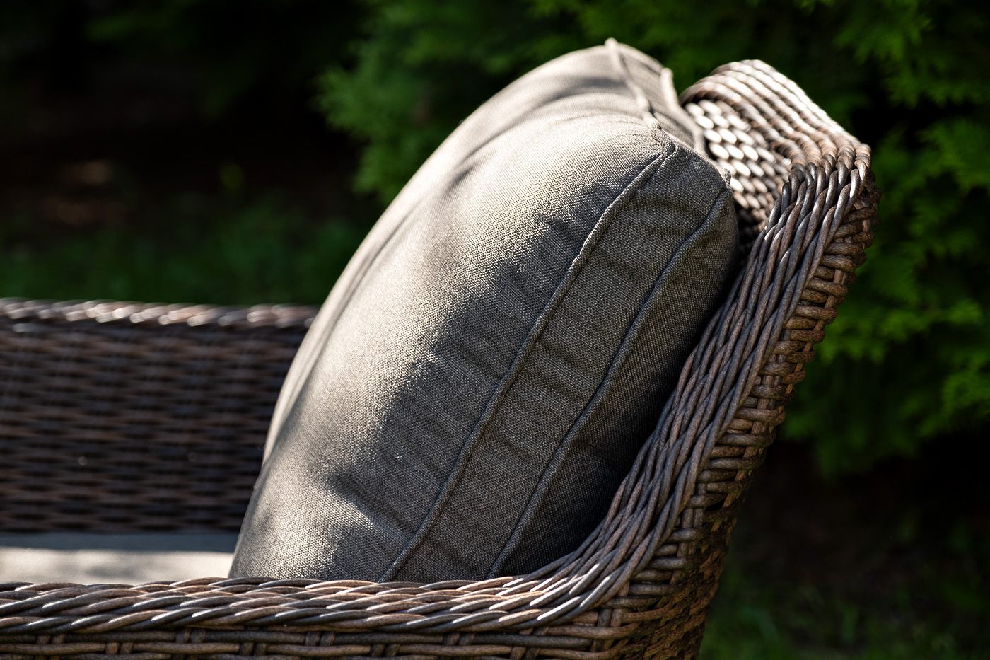 Диван и кресла оснащены подушками со съёмными чехлами серо-коричневого цвета. При изготовлении чехлов используется высокопрочный полиэстер, плотность - 230гр/м2 и влагоотталкивающая пропитка.