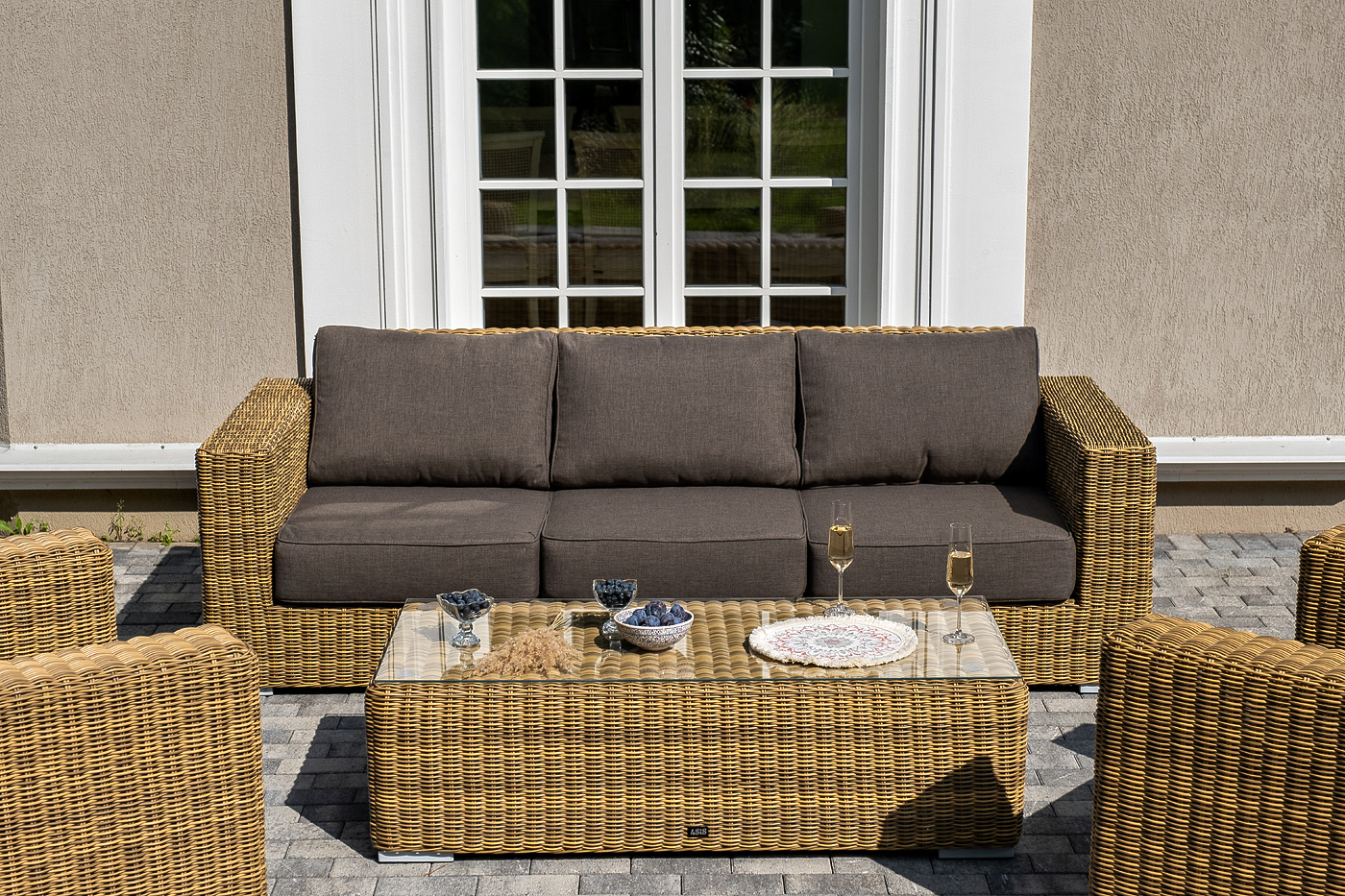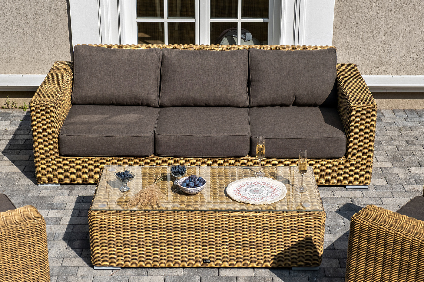 Поверхность плетеного столика представляет столешница из закаленного стекла – 5 мм.