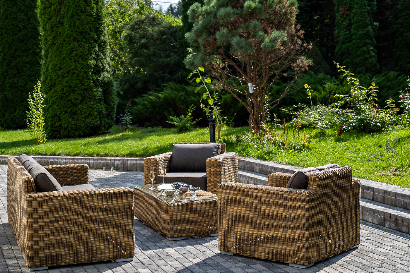 Комплект «Боно» с плетением из искусственного круглого ротанга для обустройства лаунж-зоны.
